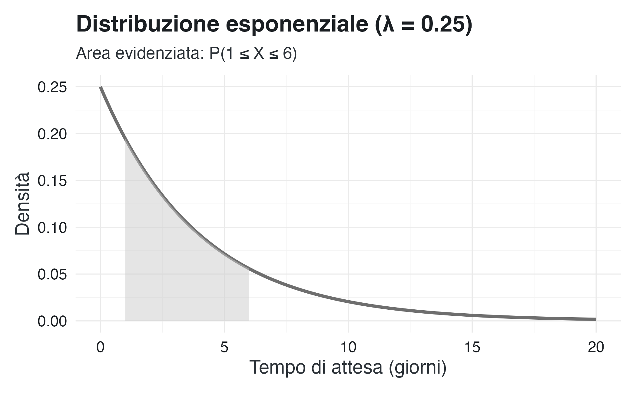title = "Distribuzione esponenziale (λ = 0.25)",