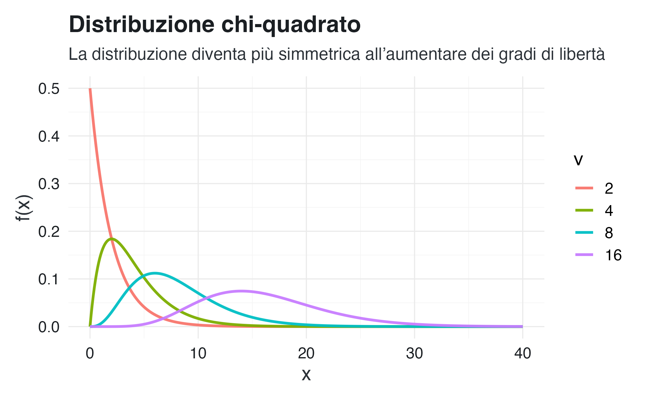 - Supporto: \(\mathbb{R}^+\) (numeri positivi)