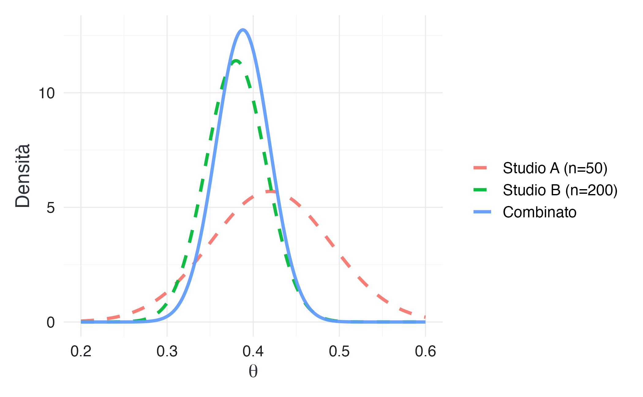 - Precisione posteriore = Precisione prior + Precisione likelihood