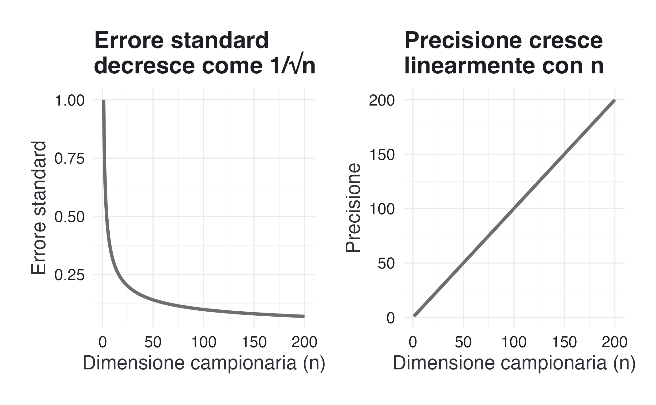 Nel capitolo precedente abbiamo visto che la varianza della media campionaria decresce con il numero di osservazioni: